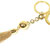 Eleganter Louis Vuitton Schlüsselanhänger aus vergoldetem Metall mit hochwertigem Quasten-Detail und gravierter Kugel mit Monogramm-Logo.