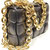 Luxuriöse Bottega Veneta Chain Cassette Bag in klassischem Schwarz mit auffälliger, goldfarbener Statement-Kette – ein ikonisches Designstück der Marke.