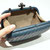Luxuriöses, blaues Leder mit charakteristischem Knoten-Verschluss als stilvolles Markenzeichen der Marke.