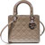 Ikonisches Design: Elegante Lady Dior Handtasche aus glänzendem, taupefarbenem Lackleder mit der charakteristischen Cannage-Steppung – ein zeitloses Symbol französischer Luxusmode.