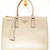 Luxuriöse Prada Handtasche aus hochwertigem weißem Leder mit geprägtem Prada-Milano-Logo – ein stilvolles Statement-Piece für Business und Freizeit.
